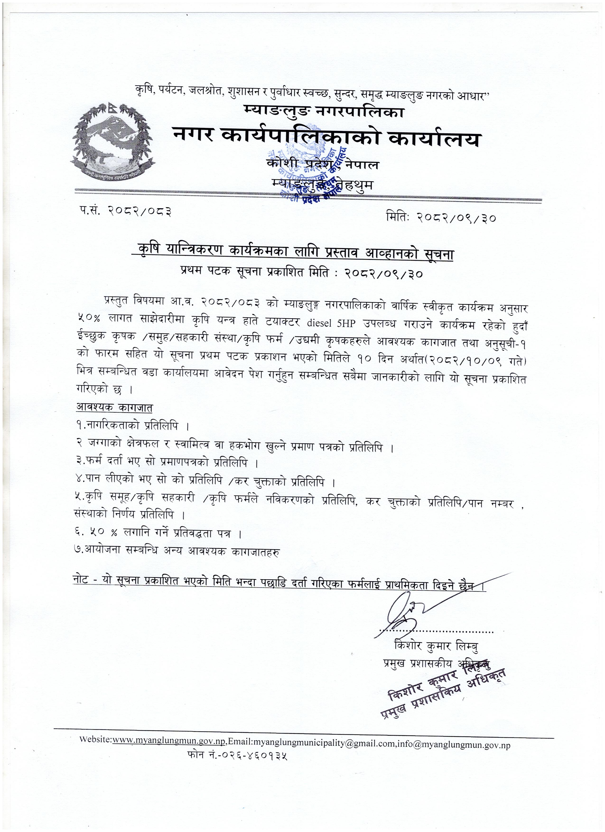 कृषि यान्त्रिकरण कार्यक्रमका लागि प्रस्ताव आव्हानको सूचना ।