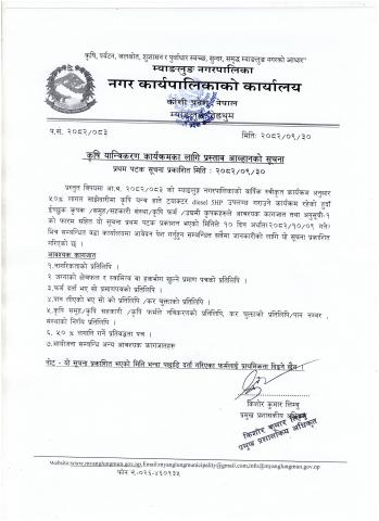 प्रस्ताव आह्वान सम्बन्धी सार्वजनिक सूचना ( प्रथम पटक प्रकाशित मिति :२०८२/११/०१ गते )