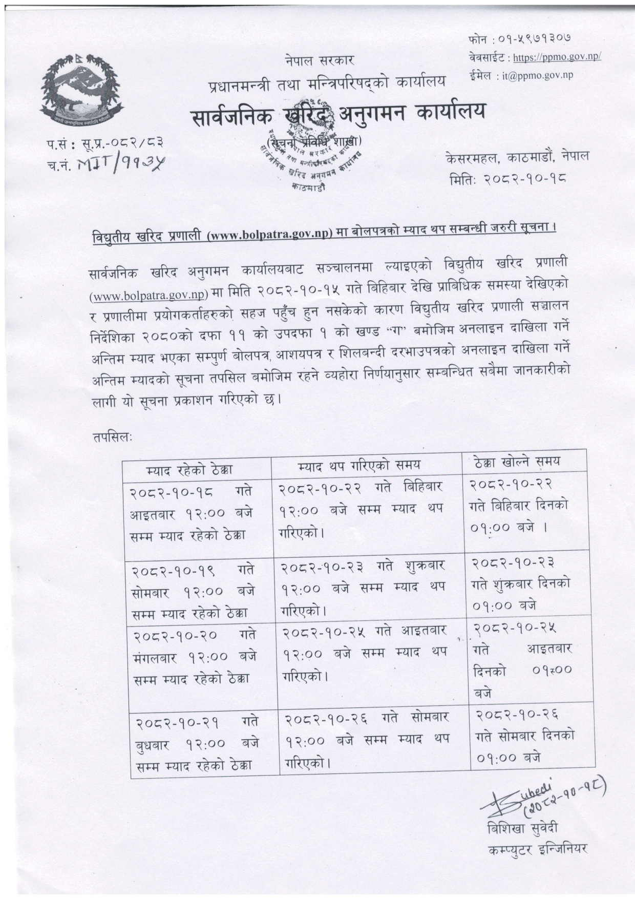 सार्वजनिक खरिद/बोलपत्र सूचना