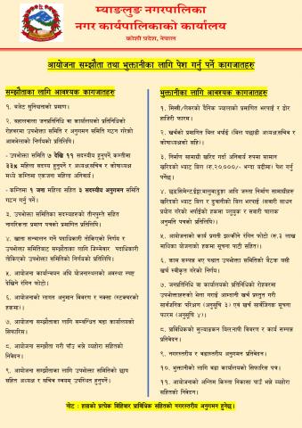 उपभोक्ता समिति मार्फत संचालन हुने आयोजना सम्झौता तथा भुक्तानीका लागि पेश गर्नु पर्ने कागजातहरु
