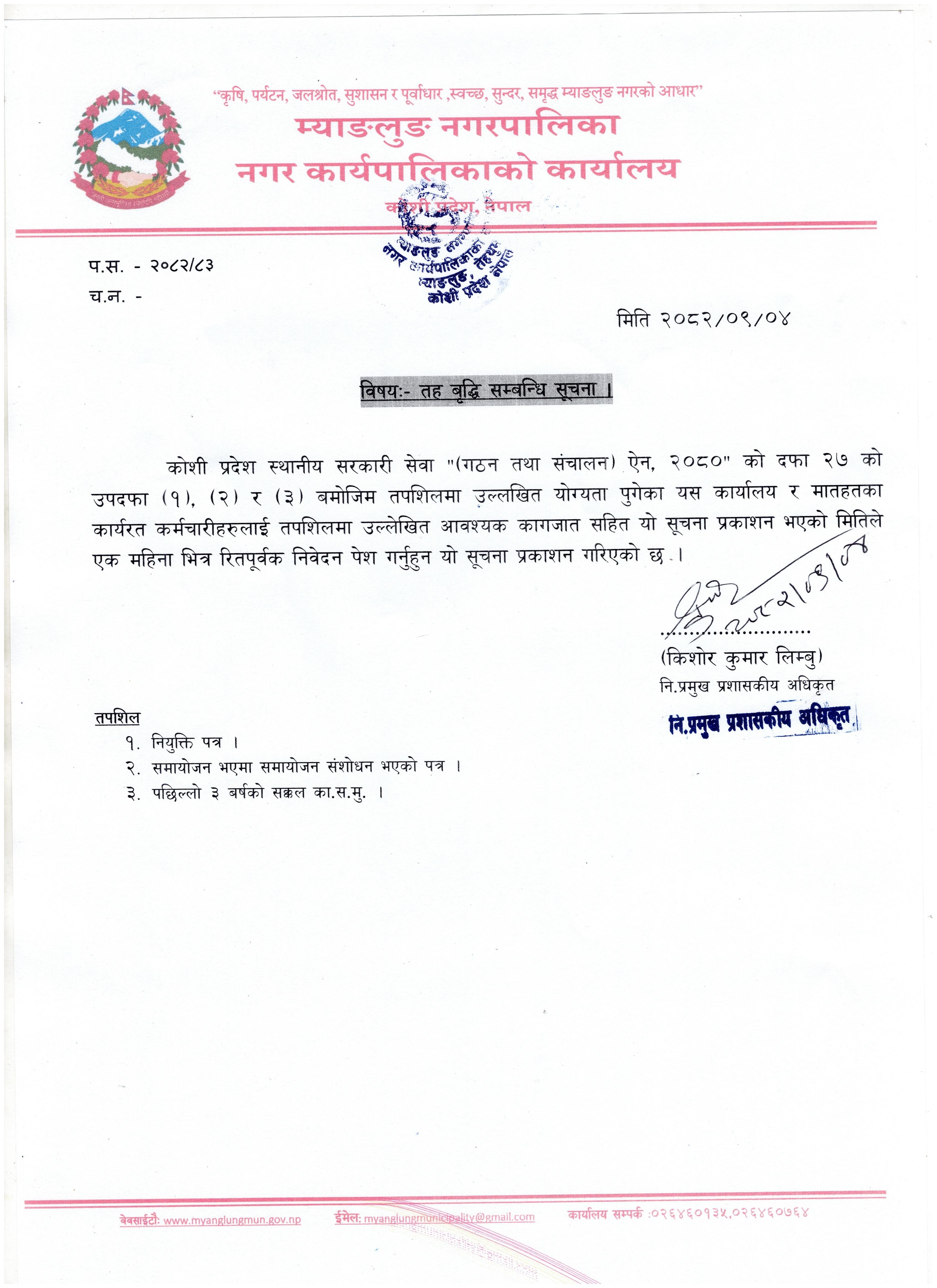 तह बृद्धि सम्बन्धि सूचना ।