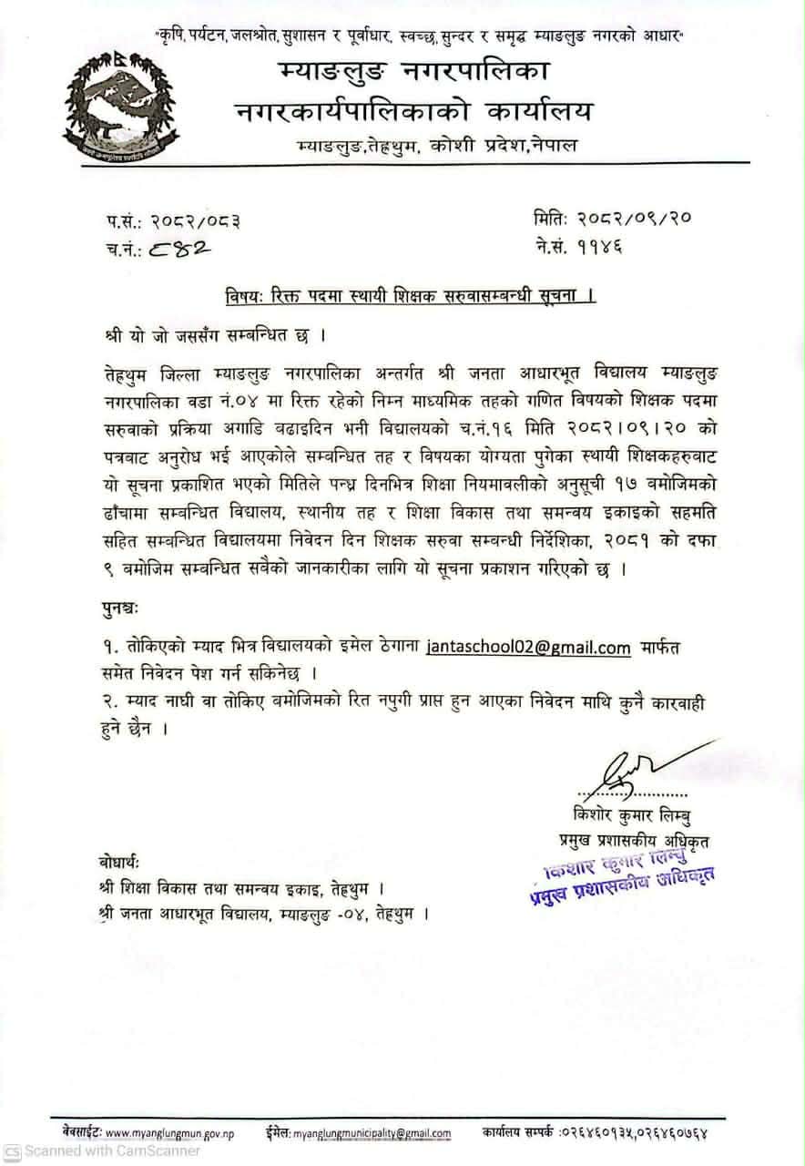 रिक्त पदमा स्थायी शिक्षक सरुवासम्बन्धी सूचना ।