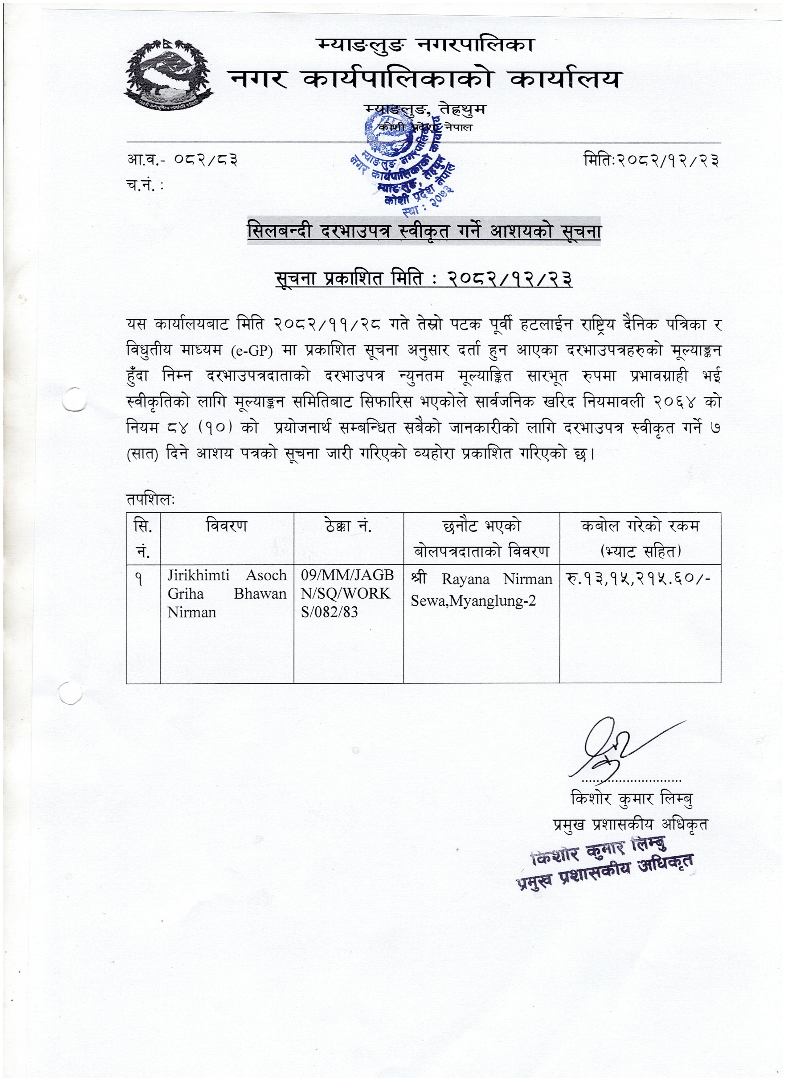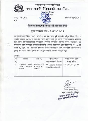सिलबन्दी दरभाउ पत्र स्वीकृत गर्ने आशयको सूचना ।