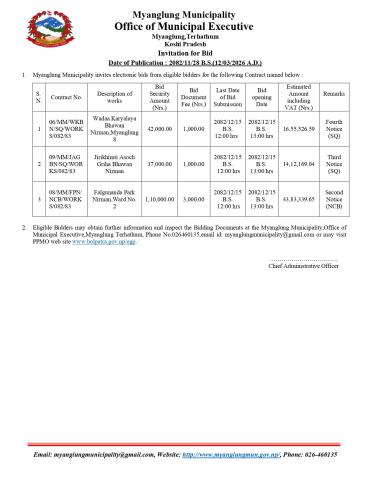 Invitation for Bids (Date of Publication : 2082/11/28 B.S.)